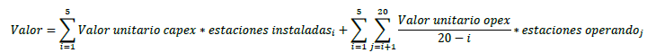 Teniendo en cuenta el año de puesta en servicio de cada localidad, el valor resultante del ejercicio conceptual en desarrollo es el siguiente: