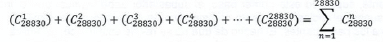 De la misma manera, para considerar el universo de opciones posibles, el resultado de la expresión anterior requiere la suma de todas las combinaciones para el conjunto de 28.830 con grupos cuyos elementos pueden variar entre 3 y 28.830. Es decir, todos los posibles grupos entre 3 o 28.830 localidades/año, que los participantes podrían ofertar. Esto se traduce en la siguiente sumatoria de combinaciones: