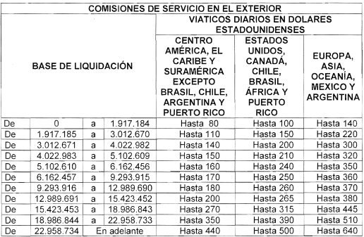 Para determinar el valor de los viáticos se tendrá en cuenta la asignación básica mensual, los gastos de representación y los incrementos de salario por antigüedad.