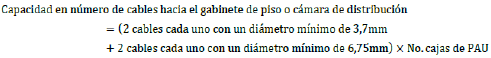 8. No instalar equipos, empalmes, reservas de cable o cualquier otro elemento que disminuya el espacio disponible para el paso de cables de las redes de los diferentes proveedores de servicios en las zonas que no estén autorizadas como las cámaras de entrada y de enlace.