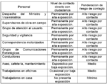 - No se generará espacio para lavado de utensilios de cocina o elementos de alimentación en el Ministerio.