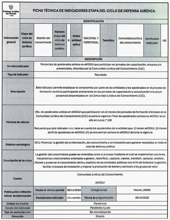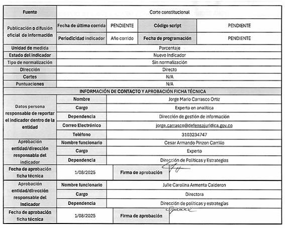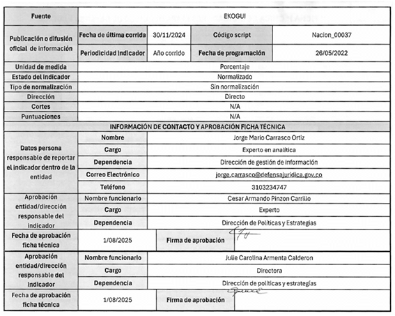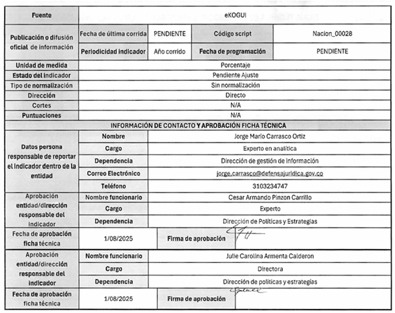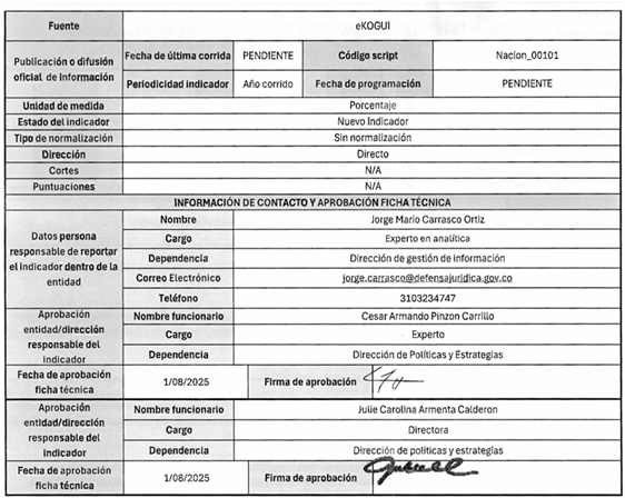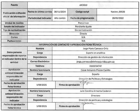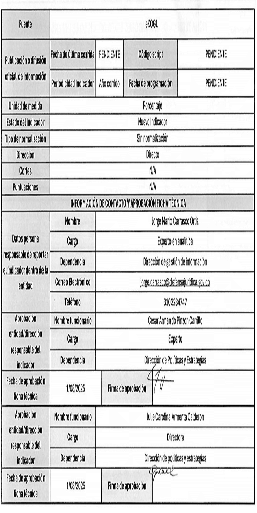 5. La fuente de captura de los datos que se requieren para el cálculo de los indicadores es principalmente el Sistema Único de Gestión e Información de la Actividad Litigiosa del Estado - eKOGUI. Adicionalmente, se utilizan otras fuentes oficiales de información como la Comunidad Jurídica del Conocimiento y las bases de la Corte Constitucional.