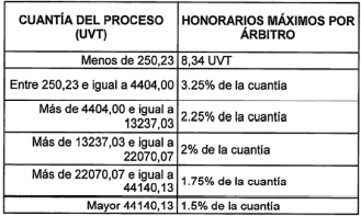 i) Las tarifas de honorarios de árbitros y secretarios;