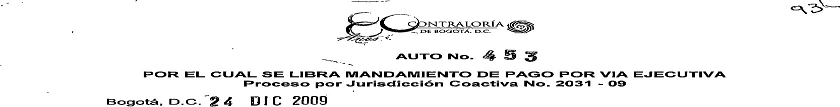 VEINTICUATRO (24) de DICIEMBRE de DOS MIL NUEVE (2009), proferida por la Subdirección de Jurisdicción Coactiva de la Dirección de Responsabilidad Fiscal y Jurisdicción Coactiva de la Contraloría Distrital de Bogotá, en donde se dispuso librar Mandamiento de Pago en mi contra.