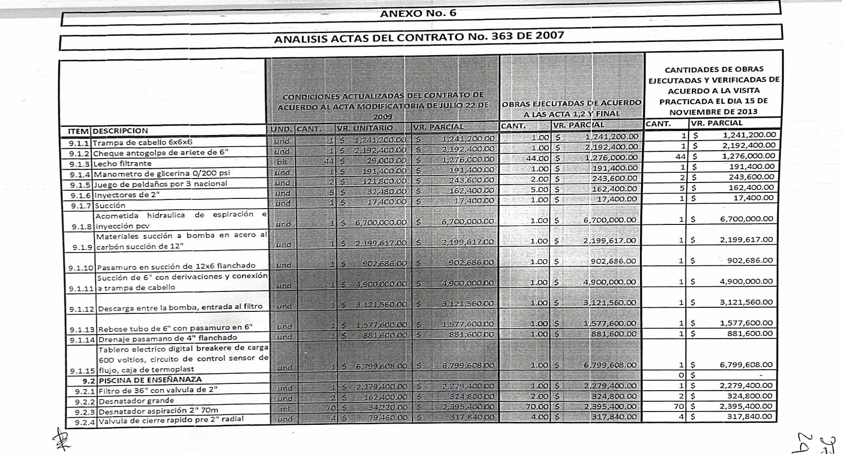 Argumentó que: “[…] el contrato 363 del 9 de noviembre del 2007 trae en la cláusula séptima las obligaciones de la interventoría técnica y en ella debe verificar el manejo y la inversión de los fondos, teniendo en cuenta lo indicado por la Gobernación porque no puede este a su propio modo que fuera o no de esta forma sino vigilar que se haga como fue ordenado en este caso que el dinero restante se invirtió en las otras piscinas tal y como pasó y fue recibido en el acta final de obras. Así mismo le dio cumplimiento a las otras funciones como mantener vigente las pólizas, controlar los planes de trabajo, ejercer control sobre los plazos, formular recomendaciones, hacer las actas de entrega, cuantificar. En estas obligaciones la número 10 dice estudiar y aprobar previa autorización del Secretario de Infraestructura del Departamento los cambios y modificaciones de las obras contratadas, Lo que no se llevó a cabo si tenemos en cuenta que este no participó de la reunión celebrada el día 14 de abril mediante la cual se modificó la inversión hacia las otras piscinas y en la reunión en la que este puso de presente la carta de la Federación Nacional de Natación […]”.