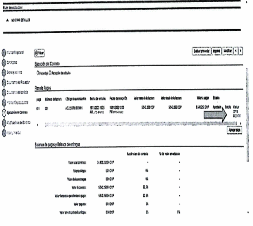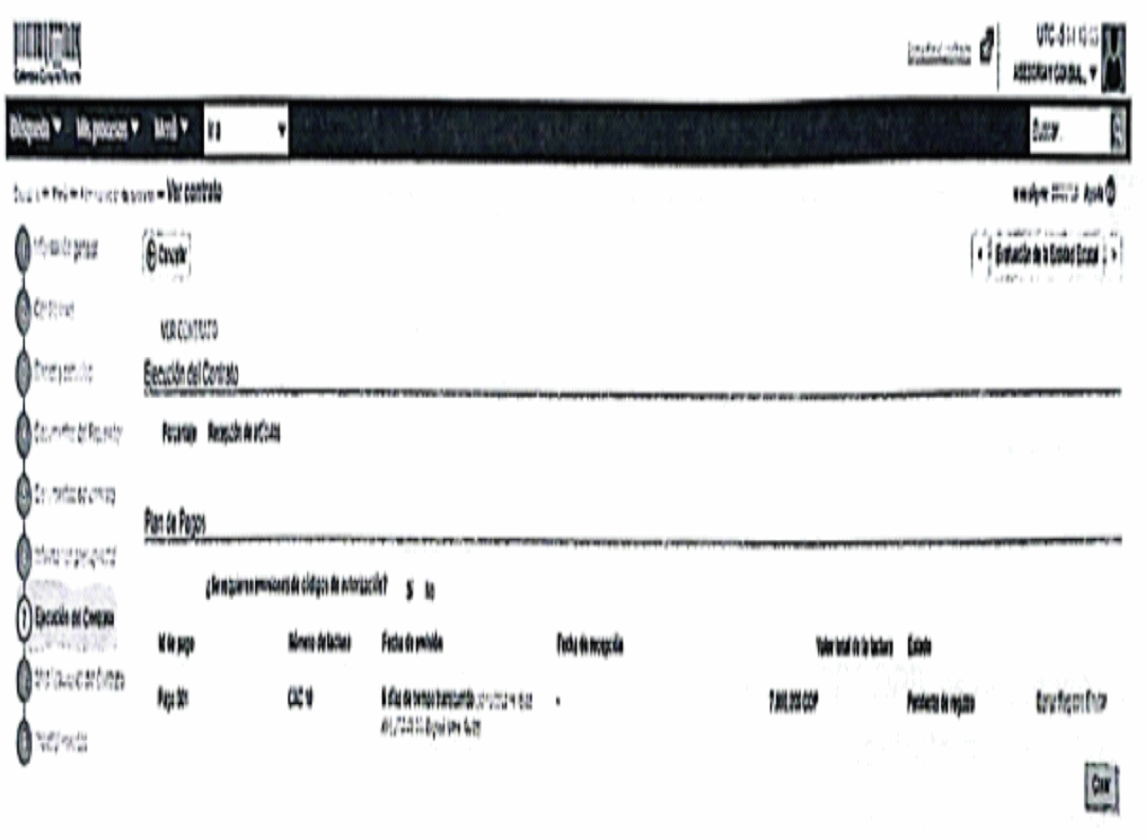 3. Posteriormente, el supervisor deberá ingresar a SECOPII- buscar el contrato - numeral 7 ejecución del contrato - habilitar el plan de pagos del mes como se muestra a continuación: