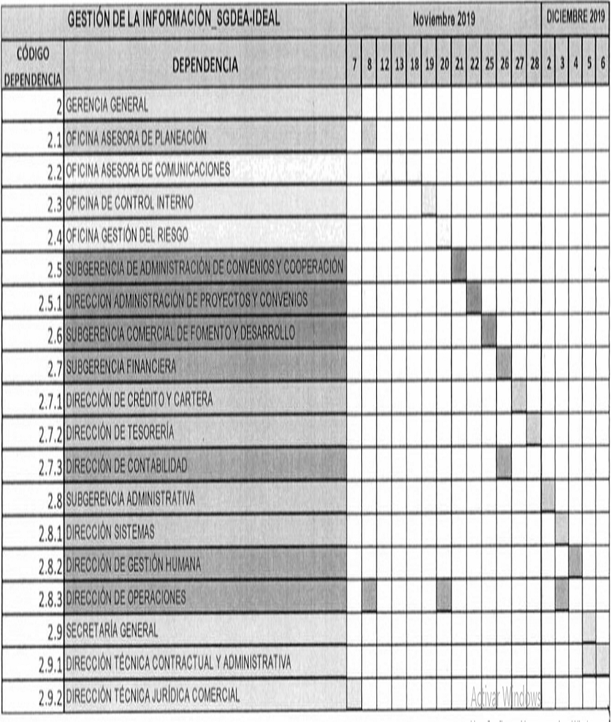 Igualmente, para esta tarea se programaron los siguientes días para cada dependencia donde estarán acompañados por el Centro de Administración Documental para orientarlos y cumplir con esta obligación: