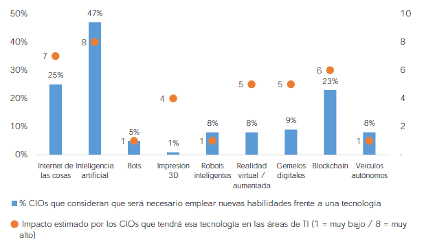 | Gráfico 10. Nuevas habilidades requeridas / impacto en áreas TI, por tecnología disruptiva a nivel mundial | 35 |