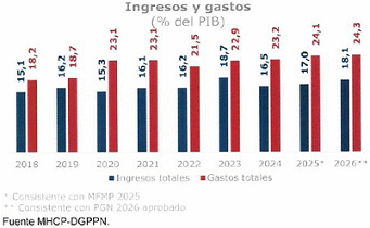 4. Gabriel Piraquive (2025), Evolución de ingresos y gastos 2022-2026 del GNC.