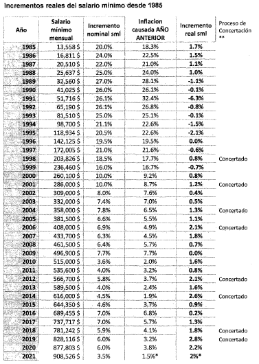 ** El proceso de negociación tripartito inició con el salario mínimo de 1997, amparado en la Ley 278 de 1996.