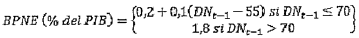 Para cada vigencia fiscal, el valor mínimo que tomará el balance primario neto estructural será el siguiente, en función del nivel de deuda neta que se observe en la vigencia anterior: