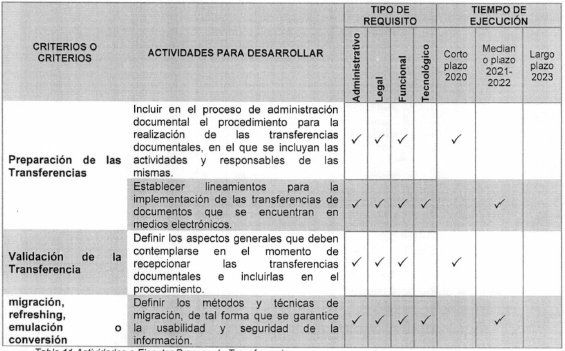 | Tabla 11 Actividades a Ejecutar Proceso de Transferencia ......................................... | 19 |