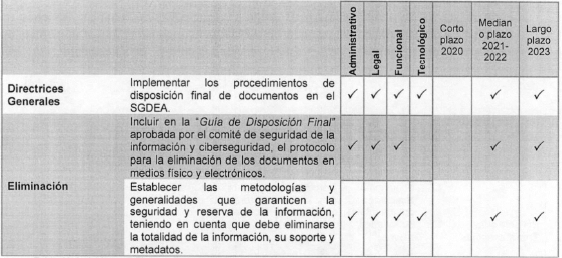 Eliminación documental: Actividad resultante de la disposición final señalada en las tablas de retención o de valoración documental para aquellos documentos que han perdido sus valores primarios y secundarios, sin perjuicio de conservar su información en otros soportes.