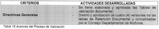 Valoración documental: Labor intelectual por la cual se determinan los valores primarios y secundarios de los documentos con el fin de establecer su permanencia en las diferentes fases del ciclo vital.