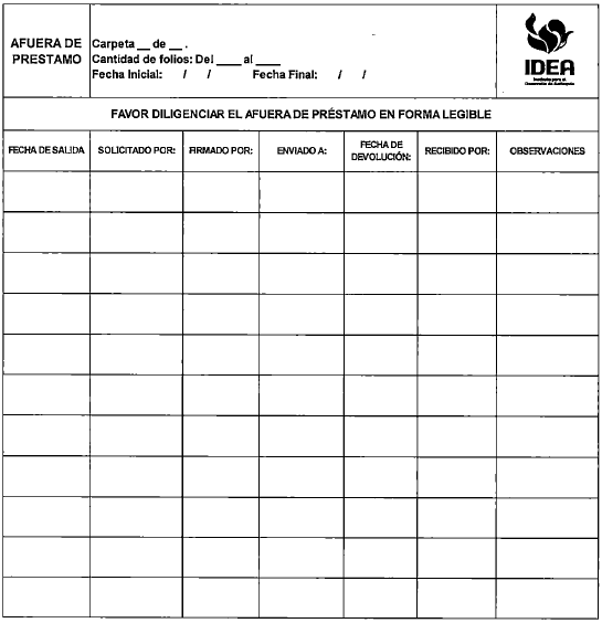 | PROGRAMA DE GESTIÓN DOCUMENTAL DEL INSTITUTO PARA EL DESARROLLO DE ANTIOQUIA IDEA ........................................................................ | 9 |