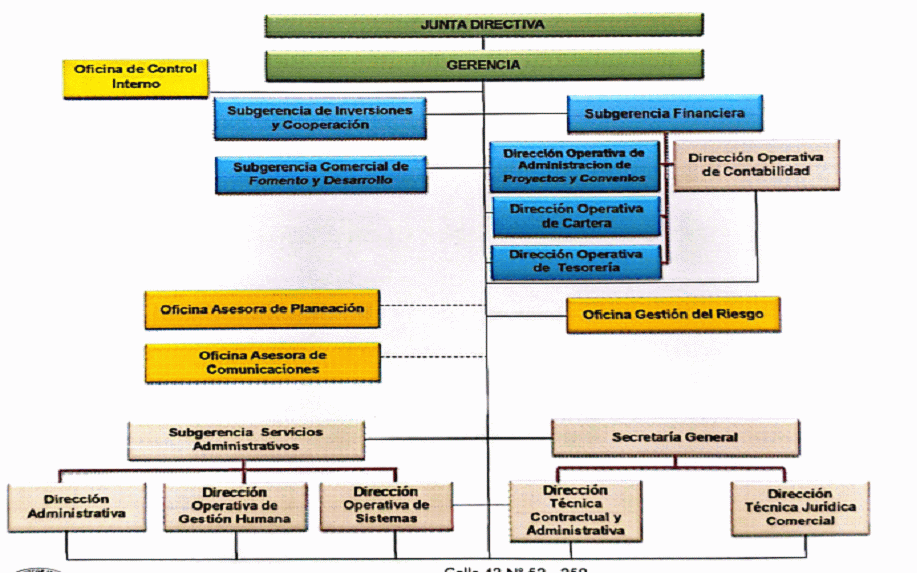 2.7.2 Dirección Operativa de Administración de Proyectos y Convenios: Tiene la función de ser la responsable de dirigir conjuntamente con la Subgerencia Financiera de la formulación de políticas, planes, programas y proyectos con el fin de garantizar la eficacia y eficiencia en la administración de los recursos por convenios y proyectos, celeridad, economía y transparencia en la ejecución de los recursos de los diferentes convenios celebrados, asegurar el cumplimiento del objeto de los convenios y cada uno de los contratos derivados de estos y los desembolsos de los recursos en forma oportuna.