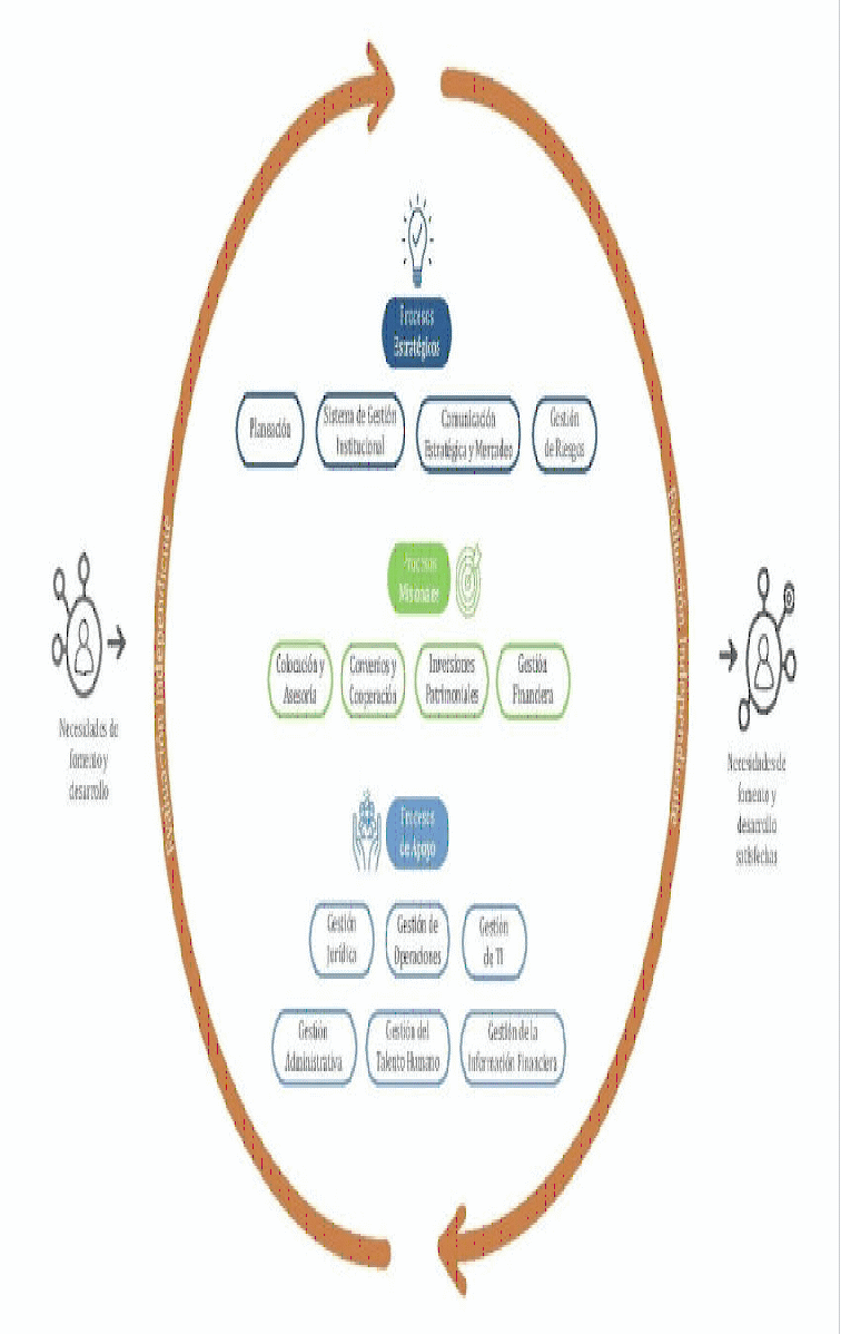 ARTÍCULO 38. MODELO DE OPERACIÓN POR PROCESOS. Establézcase la estructuración del Modelo de Operación por Procesos –MOP- del Sistema de Gestión Institucional del Instituto para el Desarrollo de Antioquia –IDEA-, atendiendo a su clasificación como Estratégicos, Misionales, Apoyo y Evaluación, así: