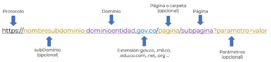 El dominio por lo general es el nombre de la entidad o sigla que lo identifica (ejemplo: MinTIC, AND, Presidencia) y está ubicado a la derecha del protocolo o del subdominio (cuando exista).Un dominio puede dividirse en subdominios y es la técnica habitual y adecuada para crear varios sitios web dentro del mismo dominio. Este término se refiere a un dominio que está jerárquicamente bajo otro que es el dominio principal.