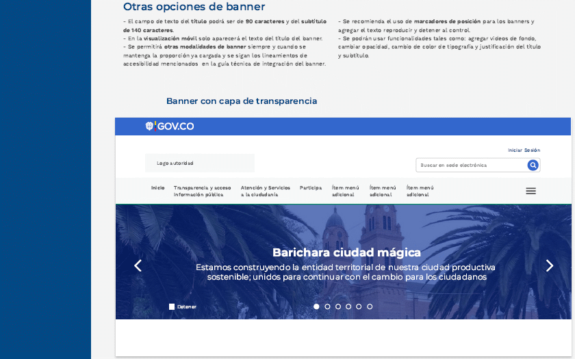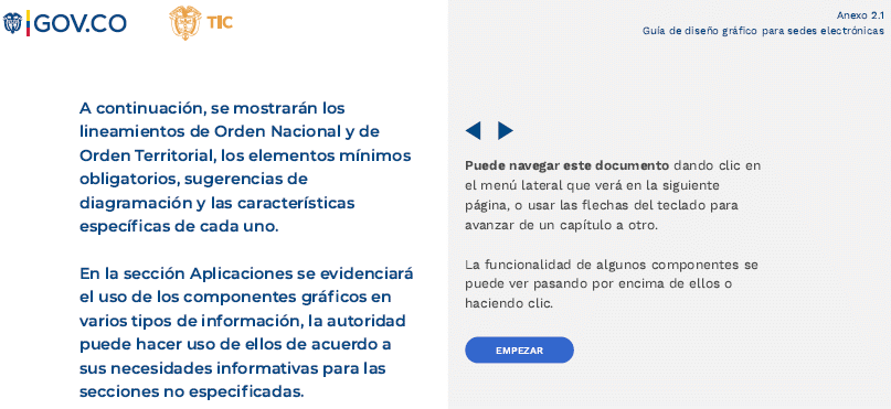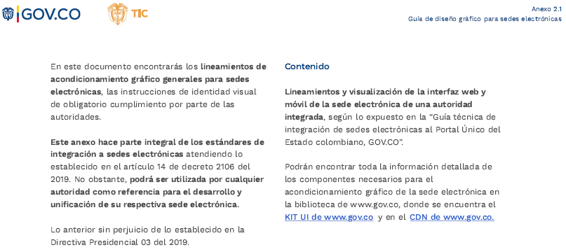 ARTÍCULO 4o. GUÍA TÉCNICA DE INTEGRACIÓN DE SEDES ELECTRÓNICAS AL PORTAL ÚNICO DEL ESTADO COLOMBIANO - GOV.CO Y GUÍA DE DISEÑO GRÁFICO PARA SEDES ELECTRÓNICAS. Los sujetos obligados deberán adoptar la Guía técnica de integración de sedes electrónicas al Portal Único del Estado colombiano - GOV.CO, señalada en el anexo 2 y la Guía de diseño gráfico para sedes electrónicas señalada en el anexo 2.1 de la presente resolución.