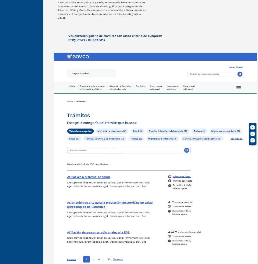 Considerando el esquema definido para la integración de los trámites, otros procedimientos administrativos y consulta de acceso a información pública establecidos en esta Guía técnica de integración de Trámites y Servicios a WWW.GOV.CO (GUÍA TÉCNICA DE INTEGRACIÓN DE TRÁMITCONSULTA DE ACCESO A INFORMACIÓN PÚBLICA AL PORTAL ÚNICO DEL ESTADO COLOMBIANO - WWW.GOV.CO ver.