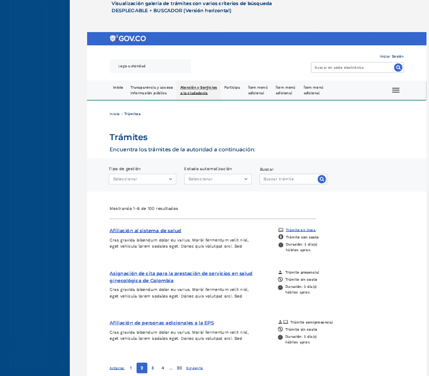 Este esquema de integración permite que la autoridad conserve su nombre de dominio, las URL estandarizadas a indexar en los buscadores, así como las direcciones comúnmente utilizadas para acceder por medios digitales a los trámites, OPA y CAIP y además, que esté integrada al Portal Único del Estado colombiano - WWW.GOV.CO presentando la interfaz de usuario de manera uniforme y facilitando los procedimientos técnicos al momento de realizar la integración por parte de las diferentes autoridades.