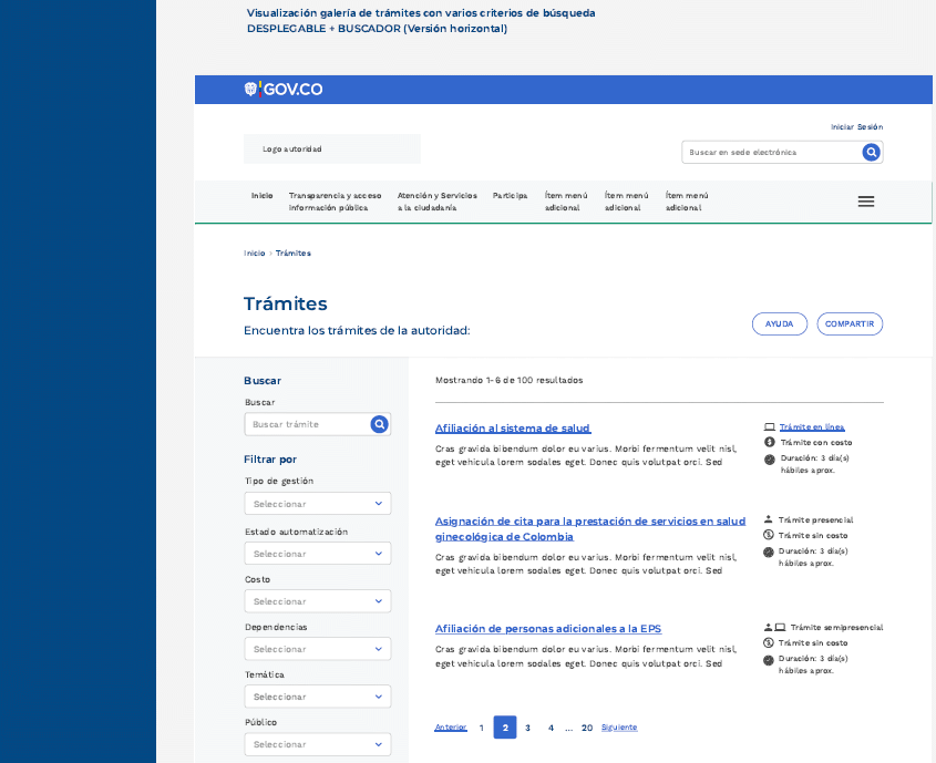 Página o carpeta: Es opcional y se refiere al directorio o carpeta que pueden usar las entidades para clasificar, archivar o indexar sus trámites.
