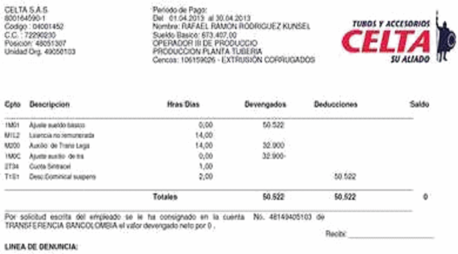 Del CD anexo en la demanda, la Sala observa los siguientes desprendibles de nómina del señor Rodríguez Kunsel, correspondientes a los periodos enero a abril de 2013, de los cuales concluye que, sí se encontraba en licencia no remunerada, tal como también lo apreció la UGPP.