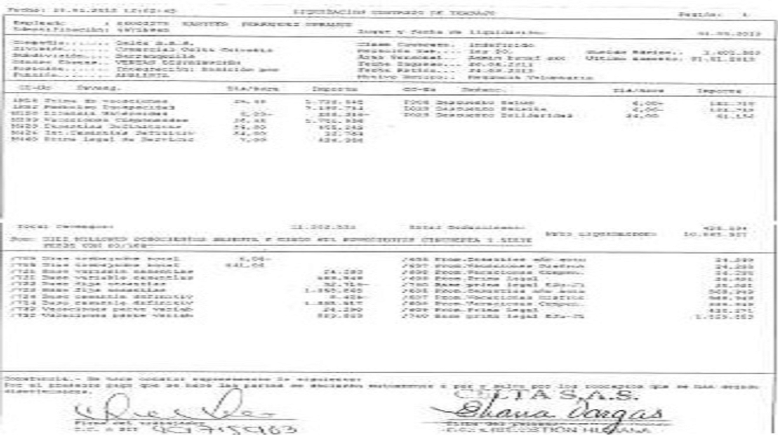 Respecto de Maryfer Fernández Durango, en la liquidación se visualiza que el contrato de trabajo a término indefinido tuvo vigencia del 20 de junio de 2011 al 24 de marzo de 2013 y el motivo de retiro fue renuncia voluntaria, tal como se observa: