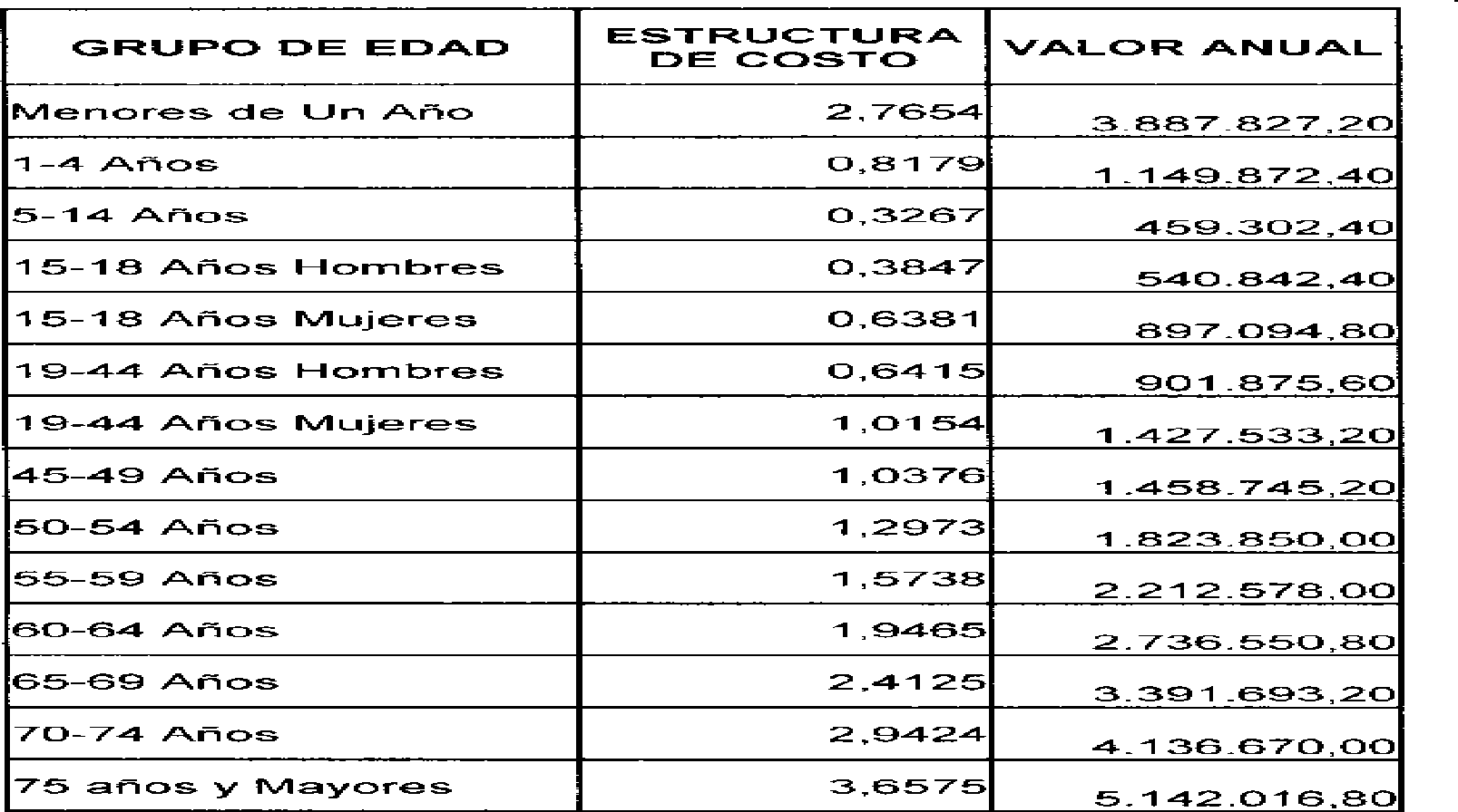 correspondiente a un valor diario de CUATRO MIL VEINTIOCHO PESOS CON NOVENTA CENTAVOS ($4.028,90). La estructura de costo por grupo etario de la Unidad de Pago por Capitación del Régimen Subsidiado UPC-S de esta ciudad es la siguiente: