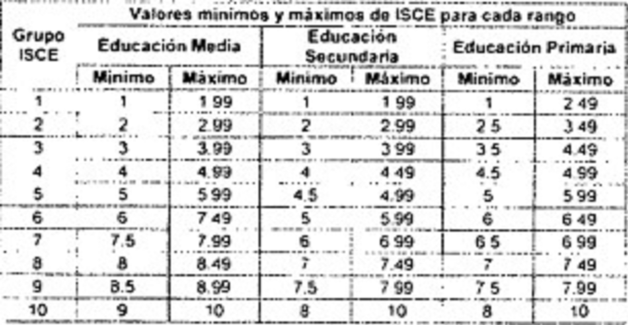2.99 en los niveles secundaria o media, si los ofrece, pertenecerá a los grupos ISCE 1 o 2 previstos en el artículo 3 y se clasificará en el régimen controlado por haber obtenido una calificación inferior a los valores mínimos establecidos para este indicador prioritario de servicios”.