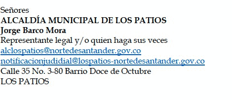 <<notificacionjudidial@lospatios-nortedesantander.gov.co>> (se resalta el error en la última dirección).