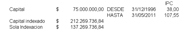 De suerte que se revocará parcialmente la decisión del juez de primer grado, en cuanto se abstuvo de ordenar la indexación de la condena y, en su lugar, se dispone que el demandado debe reconocer la suma de $75.000.000.oo, actualizada a la fecha de su pago, que a 31 de mayo de 2011 asciende a $212.269.736,84.