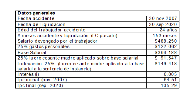 Por tanto, se liquida el lucro cesante a favor de Margoth Nelly Sosa, para lo cual se analizarán los factores integrales de la determinación del perjuicio al ser discutido en apelación la causación y forma de cuantificación del mismo.