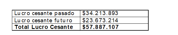 Conforme lo anterior, el valor a reconocer como lucro cesante consolidado y futuro corresponde a $57.887.107: