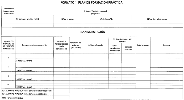Por lo anterior, se presenta el siguiente instrumento a través del cual la Institución deberá presentar el Plan de Formación Práctica.