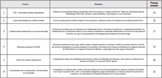 NOTAS DE VIGENCIA: - Modificado por el Acuerdo 16 de 28 de octubre de 2025, 'por el cual se modifica el Acuerdo número 03 de 2021 – Acuerdo Único del Sistema General de Regalías', publicado en el Diario Oficial No. 53.287 de 28 de octubre de 2025. Rige a partir de su publicación en el Diario Oficial. - Modificado por el Acuerdo 15 de 28 de octubre de 2025, 'por el cual se adicionan unos anexos al Acuerdo Único del Sistema General de Regalías y se adoptan requisitos sectoriales para la viabilización de los proyectos de inversión susceptibles de ser financiados con recursos del Sistema General de Regalías', publicado en el Diario Oficial No. 53.287 de 28 de octubre de 2025. Rige a partir de su publicación en el Diario Oficial. - Modificado por el Acuerdo 14 de 15 de julio de 2025, 'por el cual se modifica el artículo 5.2.1. del Capítulo 2 del Título 5 y el numeral 5.2 del Anexo 05 del Acuerdo Único del Sistema General de Regalías que contiene las metodologías para la distribución y asignación del incentivo a la producción del 30% de los rendimientos financieros del SGR', publicado en el Diario Oficial No. 53.184 de 17 de julio de 2025. Rige a partir de su publicación en el Diario Oficial. - Modificado por el Acuerdo 13 de 15 de julio de 2025, 'por el cual se adiciona el Capítulo 6 al Título 4 del Acuerdo 03 de 2021, se adoptan los lineamientos para la financiación de proyectos de inversión con cargo a los recursos del 5% del mayor recaudo del Sistema General de Regalías, y se dictan otras disposiciones', publicado en el . Rige a partir de su publicación en el Diario Oficial. - Modificado por el Acuerdo 12 de 21 de octubre de 2024, 'por el cual se adoptan los requisitos generales y sectoriales para la viabilización de los proyectos de inversión susceptibles de ser financiados con recursos del Sistema General de Regalías', publicado en el Diario Oficial No. 52.925 de 30 de octubre de 2024. Rige a partir de su publicación en el Diario Oficial. - Modificado por el Acuerdo 10 de 2023, 'por el cual se adiciona un capítulo al Acuerdo Único del SGR y se adopta la fórmula de destinación de los ingresos corrientes de las Asignaciones Directas para los Pueblos y Comunidades Indígenas y las Comunidades Negras, Afrocolombianas, Raizales y Palenqueras', publicado en el Diario Oficial No. 52.560 de 26 de octubre de 2023. Rige a partir de su publicación en el Diario Oficial. - Modificado por el Acuerdo 9 de 2023, 'por el cual se adiciona un artículo al Acuerdo Único del Sistema General de Regalías, estableciendo lineamientos sobre los recursos de funcionamiento, operatividad y administración del SGR asignados a las Instancias de Decisión de los Grupos Étnicos', publicado en el Diario Oficial No. 52.533 de 29 de septiembre de 2023. Rige a partir de su publicación. - Modificado por el Acuerdo 7 de 2022, 'por el cual se adiciona el Acuerdo Único del Sistema General de Regalías definiendo los lineamientos para la priorización y aprobación y el trámite de los ajustes y liberaciones de los proyectos de inversión y se dictan otras disposiciones', publicado en el Diario Oficial No. 52.046 de 26 de mayo de 2022. - Modificado por el Acuerdo 6 de 2022, 'por el cual se adiciona un Título al Acuerdo Único del Sistema General de Regalías y se determinan las reglas y competencias de la Asignación para la Inversión Local en Ambiente y Desarrollo Sostenible', publicado en el Diario Oficial No. 51.963 de 1 de marzo de 2022. - Modificado por el Acuerdo 5 de 2021, 'por el cual se adiciona al Acuerdo Único del Sistema General de Regalías el Título 5, se definen directrices relacionadas con los recursos destinados al funcionamiento del SGR y se adoptan las metodologías para la distribución y asignación del incentivo a la producción del 30% de los rendimientos financieros del SGR', publicado en el Diario Oficial No. 51.838 de 25 de octubre de 2021. - Modificado por el Acuerdo 4 de 2021, 'por el cual se adiciona un Título al Acuerdo Único del Sistema General de Regalías y se emiten los lineamientos para la emisión del concepto de viabilidad y del concepto técnico único sectorial de los proyectos de inversión', publicado en el Diario Oficial No. 51.833 de 20 de octubre de 2021. |