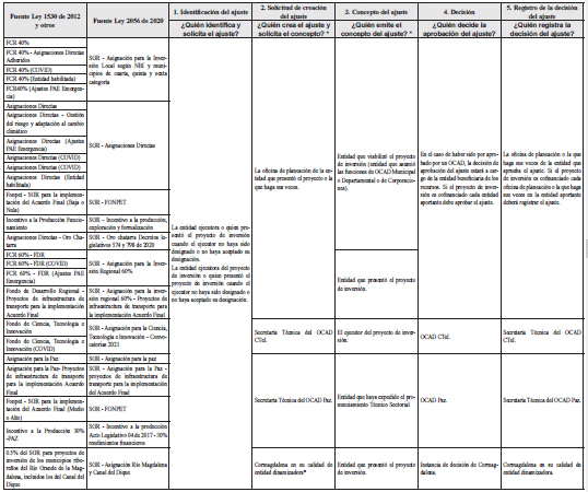 | Fuente Ley 1530 de 2012 y otros | Fuente Ley 2056 de 2020 | 1. Identificación del ajuste | 2. Decisión del ajuste | 3. Solicitud de creación y registro del ajuste |