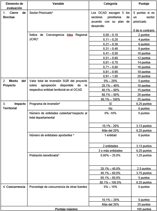 SISTEMA DE EVALUACIÓN POR PUNTAJES DE PROYECTOS DE INVERSIÓN FINANCIADOS CON RECURSOS DEL FONDO DE DESARROLLO REGIONAL, DEL FONDO DE COMPENSACIÓN REGIONAL, DE ASIGNACIONES DIRECTAS Y DEMÁS RECURSOS DEL SISTEMA GENERAL DE REGALÍAS.