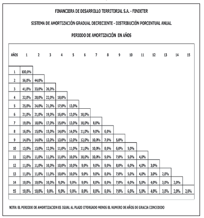 La Financiera de Desarrollo Territorial S. A., Findeter, es un banco de redescuento cuyo régimen aplicable es el de las empresas industriales y comerciales del estado. La Financiera está vinculada al Ministerio de Hacienda y Crédito Público y, sus socios son la Nación y los departamentos. Tiene como objetivo la promoción del desarrollo regional y urbano, mediante la financiación, con recursos redescontados a un intermediario financiero, de proyectos o programas de acuerdo con lo señalado en el presente Reglamento de Crédito.