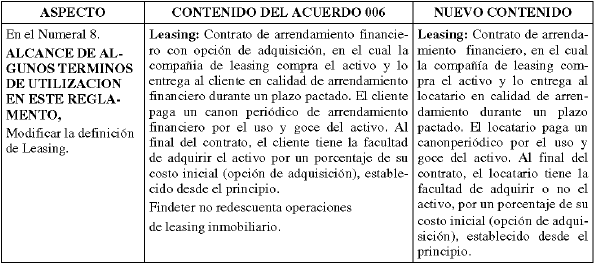 ARTÍCULO 1o. Modificar el Reglamento para las Operaciones de Redescuento de la Financiera de Desarrollo Territorial S. A., en lo siguientes aspectos: