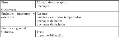 | Eléctricas | Tubos y cableado Puntos eléctricos adicionales Aparatos de iluminación como rosetas, apliques, lámparas fijas Interruptores, tomacorrientes |