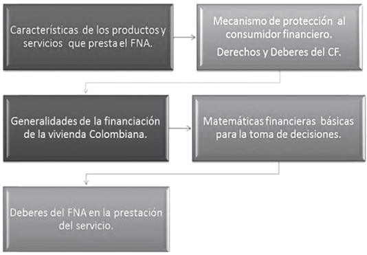 Bajo este contexto, los elementos que integran el Sistema de Atención al Consumidor Financiero se convierten en un tema estratégico de la capacitación institucional, toda vez que este fundamenta la política de servicio, definida por el FNA, y será incluido como parte de la temática en los procesos de: