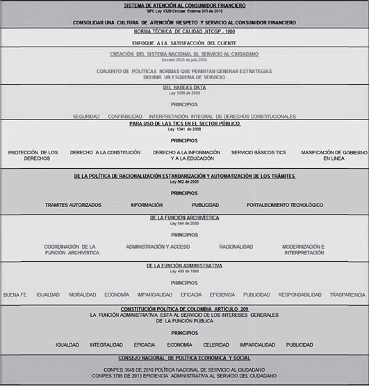El siguiente gráfico presenta la integración de las diferentes Políticas de Desarrollo Administrativo y su armonización con los principios de la Ley 1328 de la SIFC, las cuales generan una cultura de confianza y respeto hacia el Consumidor Financiero.