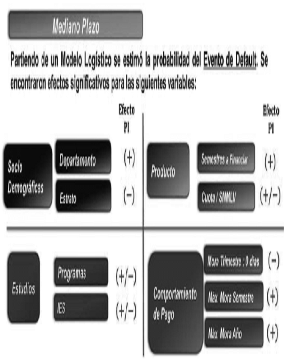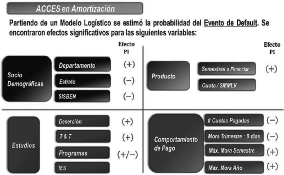 La Entidad cuenta con modelos de probabilidad de incumplimiento para las carteras Acces, pregrado mediano plazo y posgrados.