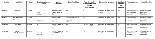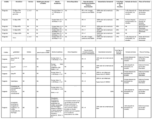Modalidades de Crédito Pregrado: