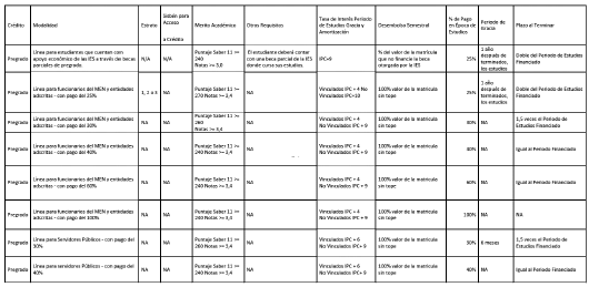 CONDICIONES FINANCIERAS. Las características y condiciones financieras del crédito educativo se aplicarán según lo establecido para cada línea y modalidad, de acuerdo con las siguientes definiciones: