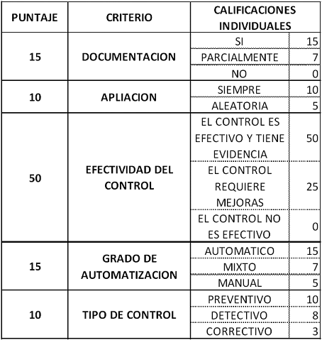 2. Criterios para la calificación y mitigación de los controles