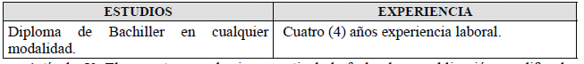V. REQUISITOS DE ESTUDIO Y EXPERIENCIA