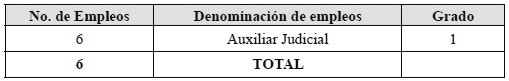 Que en ese sentido se hace necesario suprimir un (1) empleo de Profesional Especializado Grado 33 del Despacho de la Presidencia de la JEP y tres (3) empleos de Auxiliar Judicial Grado 2 (Relatoría) del Despacho de la Presidencia de la JEP para crear seis (6) empleos de Auxiliar Judicial Grado 4 (Relatoría) del Despacho de la Presidencia de la JEP y los respectivos Manuales de Funciones, en el entendido de establecer la nomenclatura, el propósito principal, las funciones, conocimientos básicos o esenciales y los requisitos mínimos de estudio y experiencia de los empleos pertinentes.