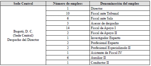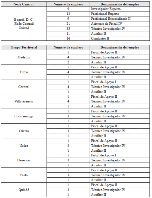 ARTÍCULO 4o. <Acuerdo derogado por el artículo 3 del Acuerdo AOG 12 de 2023> <Ver modificaciones a este artículo directamente en el Acuerdo 1 de 2019> Modificar el artículo 3o del Acuerdo número 001 de 2019, en lo relacionado a la distribución de planta de personal de la Unidad de Investigación y Acusación, la cual quedará así: